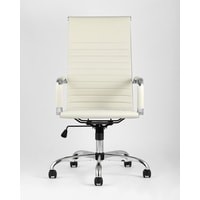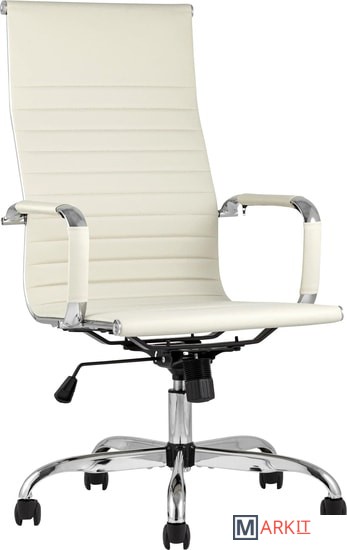 Современное, компактное и функциональное офисное кресло TopChairs City имеет регулировку по высоте и механизм качания, а высокая эргономичная спинка позволяет равномерно распределить нагрузку.Сиденье и спинка кресла изготовлены из экокожи. Этот же материал используется для чехлов на подлокотниках. Крестовина и подлокотники выполнены из хромированного металла.