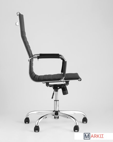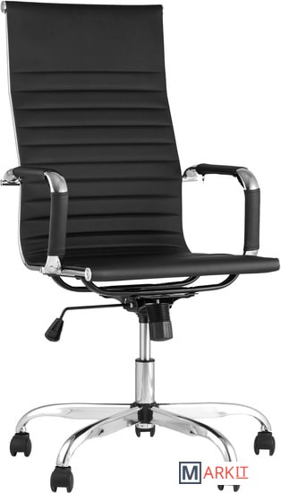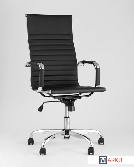 Современное, компактное и функциональное офисное кресло TopChairs City имеет регулировку по высоте и механизм качания, а высокая эргономичная спинка позволяет равномерно распределить нагрузку.Сиденье и спинка кресла изготовлены из экокожи. Этот же материал используется для чехлов на подлокотниках. Крестовина и подлокотники выполнены из хромированного металла.