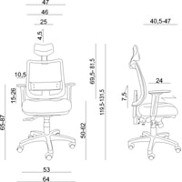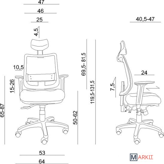 Кресло с регулируемой высотой спинки (7,5 см), возможность наклонить спинку вперед (отрицательный угол).