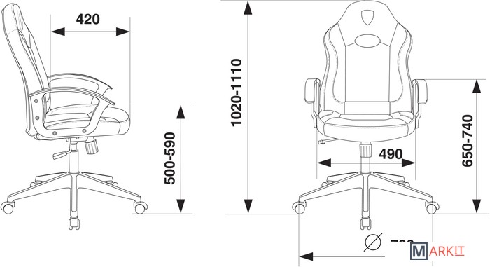 | Высота кресла | 102 — 111 см |