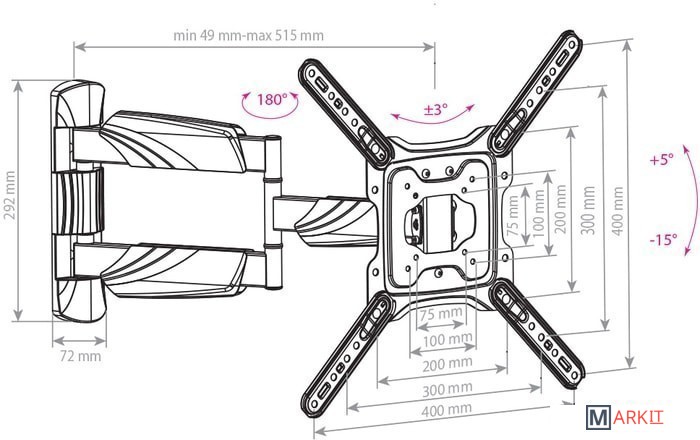 | Расстояние от стены (потолка) | 49 — 515 мм |