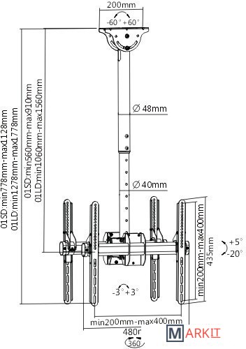 | Угол поворота (без ТВ) | 180 ° |