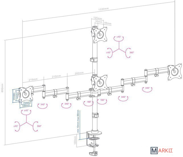 | Функциональные особенности | поворотный, с регулировкой высоты / поворотный, с регулировкой высоты, для 4 мониторов |