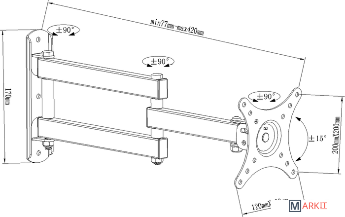 | Расстояние от стены (потолка) | 70 — 420 мм |