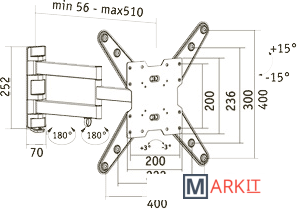 | Угол поворота (без ТВ) | 180 ° |