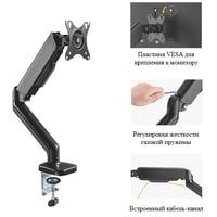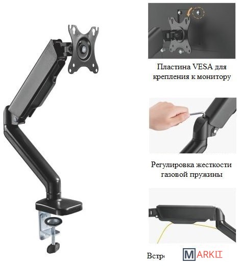 | Функциональные особенности | поворотный, с регулировкой высоты, кабель-канал, струбцинное крепление |