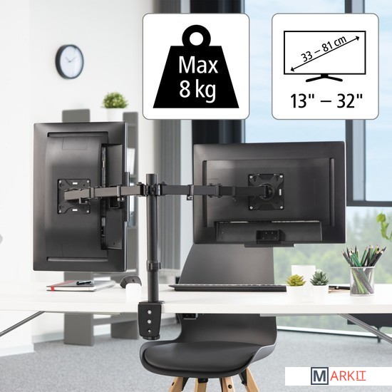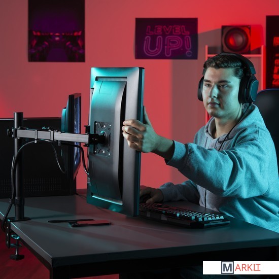 | Функциональные особенности | поворотный, с регулировкой высоты, кабель-канал, для 2 мониторов |