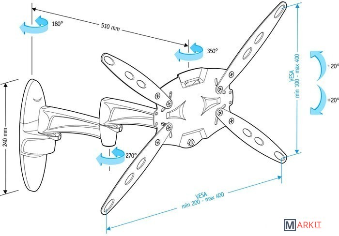 | Совместимость с креплением VESA | 200x200, 200x300, 300x300, 340x120, 400x200, 400x400 |