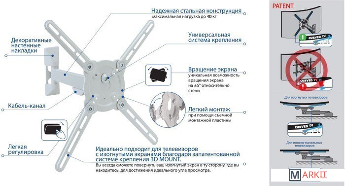 | Совместимая диагональ экрана | 22 — 65 " |