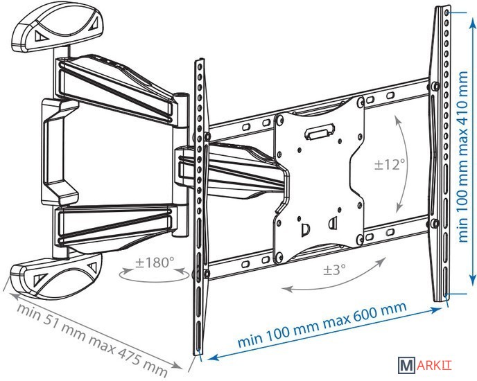 | Расстояние от стены (потолка) | 51 — 475 мм |