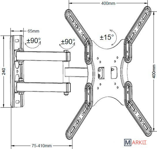| Расстояние от стены (потолка) | 75 — 410 мм |