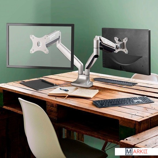 Настольный кронштейн для двух мониторов, выполненный по технологии газлифт, ONKRON G200 подходит для мониторов и телевизоров диагональю от 13 до 32 дюймов (33,02 – 81,28 см) и весом до 9 кг на каждый.Механизм с возвратной пружиной и газовым амортизатором, располагающийся внутри корпуса кронштейна, даст возможность легко перемещать монитор в любую нужную вам позицию. Настольное крепление для двух мониторов ONKRON G200 поможет вам оптимально организовать пространство и освободить место для документов и офисного оборудования на компьютерном столе. Этот стильный держатель станет хорошим решением для вашего дома или офиса.