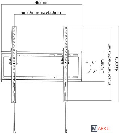 Угол наклона (без ТВ) 8 °
