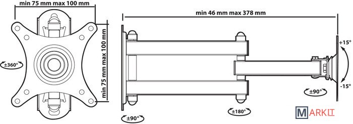 | Расстояние от стены (потолка) | 46 — 378 мм |