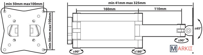 | Угол поворота (без ТВ) | 90 ° |