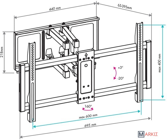 | Расстояние от стены (потолка) | 65 — 395 мм |
