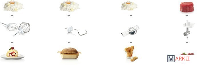 | Функции | мясорубка, взбивание, смешивание, замешивание дрожжевого теста |