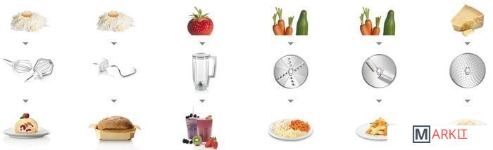 блендер, взбивание, смешивание, замешивание дрожжевого теста, терка, шинковка, ломтерезка |