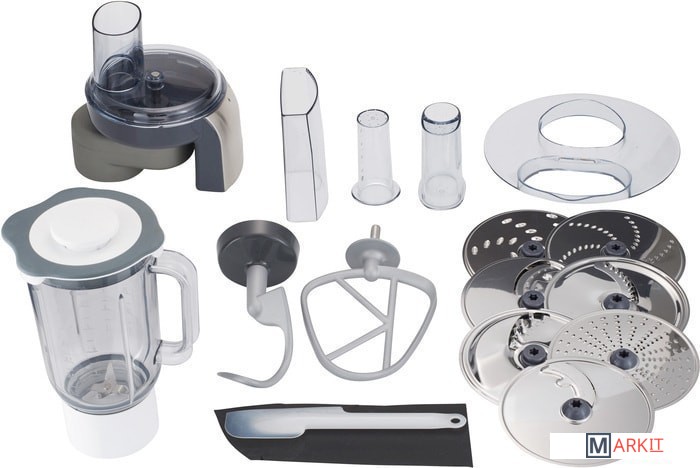 | Функции | блендер, взбивание, смешивание, замешивание дрожжевого теста, терка, шинковка, ломтерезка |