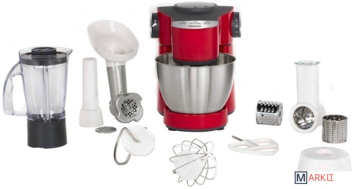 | Функции | мясорубка, блендер, взбивание, смешивание, замешивание дрожжевого теста, терка, шинковка, ломтерезка, драники |