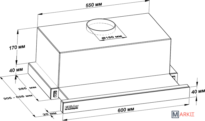 Производительность вытяжки: 600 м3/ч