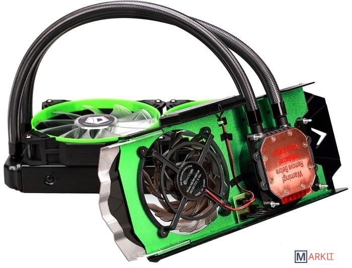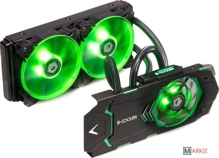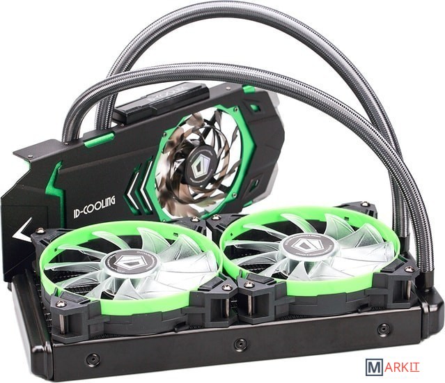 Жидкостное охлаждение с водоблоком для видеокарты с радиатором. Система заправлена, собрана не требует обслуживания. Необходима только установка.Подходит для крепления на видеокарты с монтажными отверстиями для крепления вентилятора 58.4 x 58.4 мм, 53.3 x 53.3 мм.