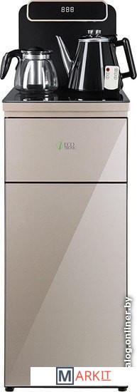 Напольный кулер с чайным столиком. Пульт дистанционного управления. Нижняя загрузка бутыли. Два чайника – для кипячения (изотермический) и заварочный. Без охлаждения, только нагрев. Нагрев воды в чайнике до 100°С. Шкафчик для хранения.Многофункциональный тиабар с пультом дистанционного управления, позволяет управлять аппаратом как на удаленном расстоянии до 7 метров, так и с помощью сенсорной панели управления на русском языке.Функция регулировки температуры воды в чайнике позволяет задавать нужную температуру воды в диапазоне от 40°С до 100°С.Функция регулировки времени подачи воды в чайник – возможность задать время подачи воды в чайник (от 18 до 50 сек).Информационный дисплей в верхней части совмещен с кранами подачи воды. Два чайника, для кипячения и заварочный. Заварочному чайнику можно включить режим постоянного подогрева (~ до 60°С). Чайник кипячения изотермический – меньше греется, лучше сохраняет температуру. Подача воды в него возможна без открытия крышки. Нагрев воды в чайнике включается вручную. Автоотключение нагрева при температуре 100°С.В верхней части корпуса есть шкафчик для хранения продуктов. Корпус черного цвета, передняя панель стеклянная, золотистого цвета. Поверхность чайного столика черная, чайники и кран подачи воды черные с серебристой отделкой.