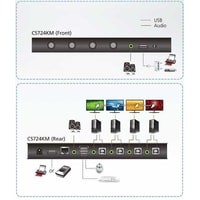 CS724KM - это 4-портовый USB KM Switch, который позволяет пользователям управлять до 4 компьютеров с помощью одной клавиатуры и мыши. Два переключателя CS724KM могут быть подключены последовательно, чтобы обеспечить управление до 8 компьютеров с одной консоли.