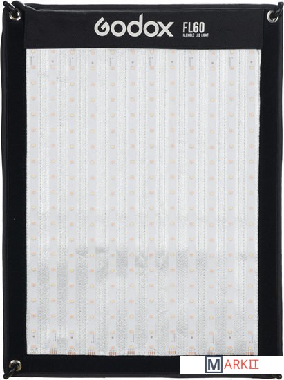 Godox FL60 – портативный гибкий, пластичный светодиодный осветитель. Используется в процессе кинопроизводства, видео- и фотосъемки за пределами студии. Может служить источником света при предметной и портретной съемке, при съемке в небольшом пространстве, например, в салоне автомобиля.Осветители обеспечивают качественный световой поток с плавно регулируемыми цветовой температурой и яркостью. Для дистанционного управления осветителем используются: беспроводной пульт дистанционного управления RC-A5 (входит в комплект), который работает на частоте 433 МГц и позволяет использовать 6 групп и 16 каналов; смартфон с мобильным приложением GodoxPhoto, доступным в App Store и Play Market.Для питания осветителя можно использовать батарею V-mount (приобретается отдельно) или источник постоянного тока.В комплект входит складной держатель X-mount для легкой установки осветителя и сумка для переноски и хранения.