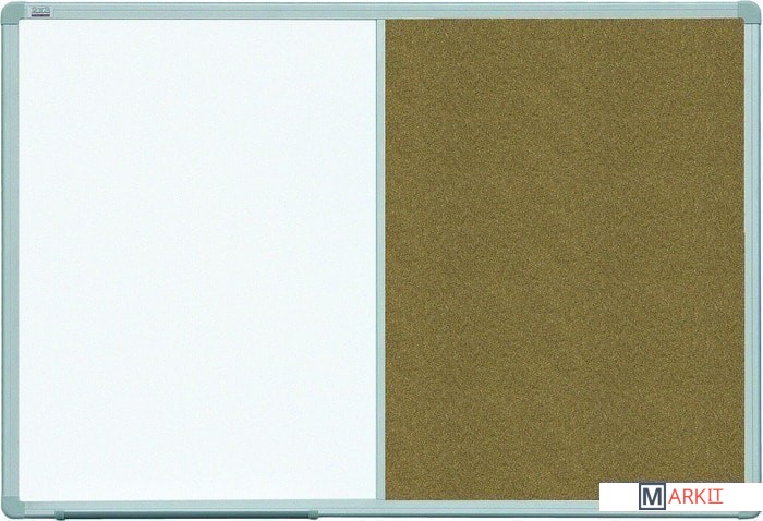 Доска комбинированная маркер/пробка в рамке ALU23 имеет:- Лакированную поверхность для письма сухостиральными маркерами и крепления информации магнитами;- Пробковую поверхность для крепления информации;- Рамку из анодированого алюминия с пластиковыми уголками;- Скрытое кремпление к стене в четырех углах;- Элементы крепления к стене;