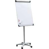 Флипчарт Мобилчарт предназначен для использования в местах, где есть необходимость частого перемещения доски. Поверхность магнитная-сухостираемая. Размер поверхности 70 x 100 см. Конструкция серого цвета с чёрным обрамлением. Алюминиевая рамка. Колёсики с системой блокировки гарантируют устойчивость. Постоянный угол наклона доски 15°. Высота 190 см. Металлические полка для маркеров и прижимная планка с передвигающимися пластиковыми держателями для крепления блокнотов.