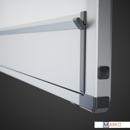 Доска StarBoard – это элегантный, современный дизайн и безупречное качество исполнения. Поверхность магнитно-маркерная для письма маркерами и крепления информации с помощью магнитов. Профиль из анодированного алюминия. У доски имеется две полки, встроенные в нижнюю часть. Для обеспечения прочности, доска с обратной стороны доски усилена оцинкованным листом стали. Крепление к стене с помощью регулировочных винтов. Доска комплектуется крепежным комплектом, 12 магнитами, 4 маркерами и фирменной магнитной щеткой.