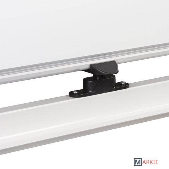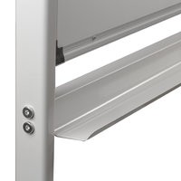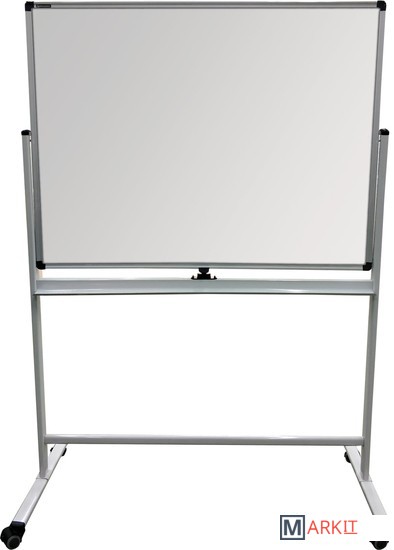 Особенности:— двусторонняя: белое лаковое покрытие предназначено для письма специальными маркерами для белой доски, зелёное — для письма мелом;— возможность крепления информации при помощи магнитов;— перемещается на колесиках;— полочка для принадлежностей в комплекте;— высота в сборе — 178 см, размер рабочей поверхности — 90х120 см;— рамка и полочка изготовлены из алюминиевого профиля, материал стенда — сталь.