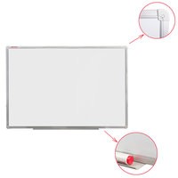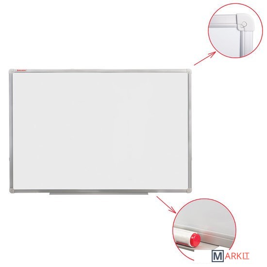 Лаковое покрытие предназначено для письма специальными маркерами для белой доски, а металлическая поверхность позволяет размещать информацию при помощи магнитов. Доска размером 100х180 см имеет укрепленные пластиковые уголки, которые позволяют скрыть места крепления к стене. Профиль придает изделию дополнительную прочность и современный стильный внешний вид. Полочка для аксессуаров и элементы крепления входят в комплект.