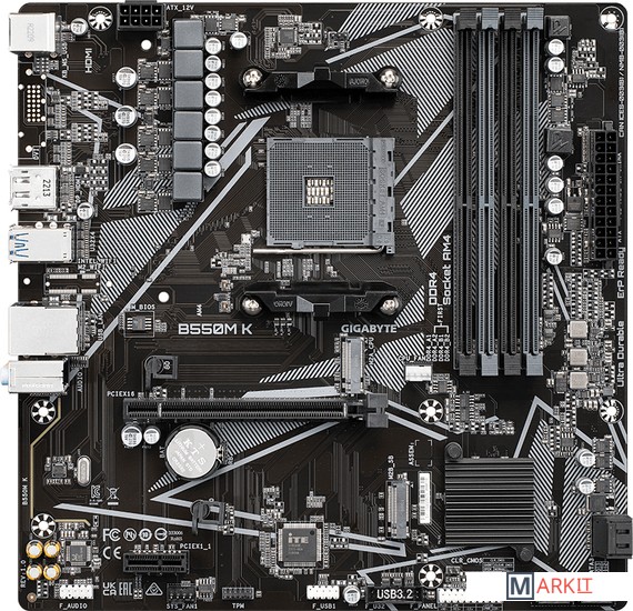 Два M.2 разъемы для NVMe PCIe 4.0*/3.0 накопителейБлагодаря встроенным M.2-разъемам NVMe PCIe 4.0 */ 3.0 x4 и PCIe 3.0 x2 материнские платы GIGABYTE предоставляют пользователям возможность подключать к системе твердотельные NVMe PCIe или SATA накопители (максимальная пропускная способность до 64 Гбит/с). Задействовав оба разъема M.2 можно организовать идеальное высокоскоростное хранилище данных, в том числе, средствами доступного RAID-массива.* Зависит от модели установленного процессора.Индустриальный стандарт для защиты LAN-портов от статического электричества и пробояДля защиты от электростатики в материнских платах GIGABYTE применяются микросхемы, запас прочности которых в 3 раза выше типовых ИС. Это помогает надежно защитить материнскую плату и ее компоненты от повреждений, вызванных статическим электричеством. Материнские платы GIGABYTE также оснащены специальными микросхемами, которые обеспечивают защиту материнской платы и ПК в целом от перенапряжений и превышения мощности в случае перебоев с электропитанием.Smart Fan 5Благодаря Smart Fan 5 пользователи могут быть уверены в том, что их игровой ПК будет функционировать в наиболее благоприятном температурном режиме без ущерба для производительности. Благодаря термодатчикам, размещенным на материнской плате, средствами Smart Fan 5 можно контролировать работу каждого вентилятора. Кроме того, Smart Fan 5 - это еще и большее количество гибридных разъемов для подключения вентиляторов, которые поддерживают режимы работы PWM и Voltage, обеспечивая максимальное удобство обслуживания установленной жидкостной системы охлаждения.Сторонникам тишины! Благодаря функции Fan Stop вентилятор полностью остановится в тот момент, когда температура окажется ниже указанного порогового значения. Какой именно вентилятор должен остановиться на основании показаний выбранного датчика, и при какой именно температуре, – все это пользователь сможет настроить исходя из собственных предпочтений.High-End аудиоконденсаторыНа материнских платах GIGABYTE устанавливаются аудиоконденсаторы high-end класса. Такие компоненты позволяют с высокой достоверностью воспроизводить генерируемый сигнал, обеспечивая великолепное звучание и реалистичные спецэфекты в играх.Антишумовой экранМатеринские платы GIGABYTE оснащены антишумовым экраном звуковой подсистемы, который минимизирует воздействие помех и наводок на чувствительные аналоговые компоненты аудиотракта на уровне схемотехники печатной платы.Цельнометаллические контактыМатеринские платы GIGABYTE B550-серии оснащены ATX 12 В разъемами питания процессора с цельнометаллическими контактами, с целью обеспечить бесперебойную работу ЦП, в том числе в условиях повышенной нагрузки.Устойчивая к влажности печатная платаВлажность негативным образом влияет на срок службы ПК. Известно, что содержание влаги в воздухе изменяется в зависимости от сезона. Проблема влажности окружающей среды для системных плат GIGABYTE семейства Ultra Durable™ не актуальна, поскольку стекловолокно нового поколения, на базе которого производятся печатные платы для изделий GIGABYTE, способно эффективно противостоять влаге. Прогрессивная технология производства печатных плат предусматривает применение в качестве основы принципиально нового стекловолокна, у которого расстояние между волокнами сокращено, а узлы переплетения более плотные. Таким образом, 