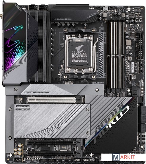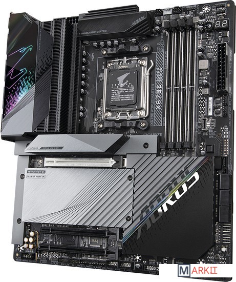 Процессорный разъем AMD Socket AM5: Совместимость с процессорами AMD Ryzen™ 7000 серииНепревзойденная производительность: Цифровой VRM-модуль (дизайн Twin, схема питания 16+2+2 фазы)Разъемы 2-канальной подсистемы памяти DDR4: 4*SMD DIMMs with EXPO & XMP Memory Module SupportДисковая подсистема нового поколения: 2 разъема M.2 PCIe 5.0 x4 и 2 разъема M.2 PCIe 4.0 x4Массив пластин Fins-Array III радиатора VRM и радиатор M.2 Thermal Guard III: To Ensure VRM Power Stability & 25110 PCIe 5.0 M.2 SSD PerformanceФиксаторы EZ-Plus: SMD PCIe 5.0 x16 Slot & M.2 Connectors with Quick Release & Screwless DesignHi-Fi аудиоподсистема, приложение DTS:X® Ultra: Кодек Realtek ALC1220Высокоскоростные сетевые интерфейсы: Intel® 2.5GbE LAN & Intel® Wi-Fi 6E 802.11axРасширенные коммуникационные возможности: DP, HDMI, USB-C® (альтернативный режим DP), два разъема USB Type-C® 20 Гбит/с, совместимость с ожидаемыми вскоре платами расширения GIGABYTE USB4 AICКнопка Q-Flash Plus: Возможность обновления микрокода BIOS материнской платы без необходимости установки в систему ЦП, модулей ОЗУ и дискретной графической платы