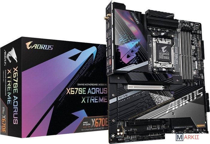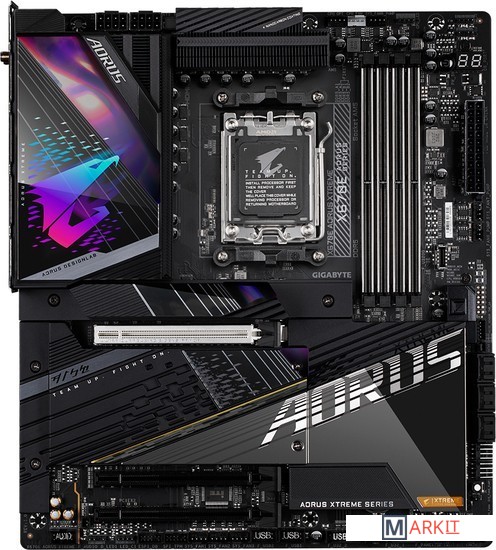 Процессорный разъем AMD Socket AM5 : Совместимость с процессорами AMD Ryzen™ 7000 серииНепревзойденная производительность : Цифровой VRM-модуль, целевые фазы питания (схема 18+2+2)Разъемы 2-канальной подсистемы памяти DDR4 : 4*SMD DIMMs with EXPO & XMP Memory Module SupportДисковая подсистема нового поколения : 4 разъема M.2, шинный интерфейс/режим работы PCIe 5.0 x4Массив пластин Fins-Array III радиатора VRM и радиатор M.2 Thermal Guard III : To Ensure VRM Power Stability & 25110 PCIe 5.0 M.2 SSD PerformanceФиксаторы EZ-Plus : SMD PCIe 5.0 x16 Slot & M.2 Connectors with Quick Release & Screwless DesignHi-Fi аудиоподсистема, приложение DTS:X® Ultra : Аудиокодек Realtek ALC1220 и Hi-Fi ЦАП ESS SABRE 9118, внешний ЦАП USB ESSential в комплектеВысокоскоростные сетевые интерфейсы : Marvell® AQtion 10GbE LAN & Intel® Wi-Fi 6E 802.11axРасширенные коммуникационные возможности : DP, HDMI, порт USB Type-C® 10 Гбит/с, два порта USB Type-C® 20 Гбит/с, совместимость с ожидаемыми вскоре платами расширения GIGABYTE USB4 AICQ-Flash Plus : Возможность обновления микрокода BIOS материнской платы без необходимости установки в систему ЦП, модулей ОЗУ и дискретной графической платы