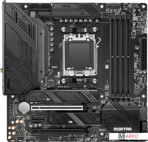 Серия MAG – это бескомпромиссная надежность и долговечность. В ней представлены игровые продукты с дизайном в стиле «милитари».Материнские платы MSI позволяют регулировать все подключенные к ним системные и процессорные вентиляторы, выдавая пользователю всю необходимую для этого информацию в лаконичном визуальном формате как в BIOS, так и в Windows. Чтобы скорость вращения изменялась автоматически, достаточно указать 4 пороговых значения температуры.Увеличенный радиаторБлагодаря увеличенному радиатору увеличивается общая площадь теплорассеяния, что способствует эффективному охлаждению под высокими нагрузками.Система охлаждения M.2 Shield FROZRОхлаждение M.2 Shield Frozr предназначено для SSD в слотах M.2 и предотвращает падение производительности, которое может случиться из-за перегрева.Массивный радиатор системы питанияРассеивает тепло, выделяемое МОП-транзисторами в верхней части платы.Эффективные термопрокладкиНа транзисторах системы питания имеются термопрокладки с теплопроводностью в 7Вт/(м·K). Доп. термопрокладками снабжены катушки. Это гарантирует стабильную работу компьютера под высокими нагрузками.Поддерживаются десктопные процессоры серии AMD Ryzen™ 7000Поддерживается память DDR5 частотой до 6400+(OC) МГцЭффективная система охлаждения: увеличенный радиатор и радиатор M.2 Shield FrozrКонтроллеры 2.5G Ethernet и Wi-Fi 6E: высокоскоростное и стабильное проводное и беспроводное сетевое подключение для широкого спектра приложенийИнтерфейс Lightning M.2: подключение высокоскоростных твердотельных накопителей в режиме PCIe Gen4Интерфейс Lightning USB 20G: Порт USB 3.2 Gen2x2 обладает пропускной способностью в 20 Гбит/с – в четыре раза выше, чем у USB 3.2 Gen1.Аудиосистема AUDIO BOOST 5: высококачественное звучание, создающее неповторимую атмосферу в играх