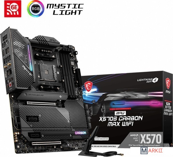 Поддержка процессоров AMD Ryzen 5000 Series, 5000 G-Series, 4000 G-Series, 3000 Series, 3000 G-Series, 2000 Series and 2000 G-SeriesПоддержка памяти DDR4 с частотой до 5300 МГц (в режиме разгона)Высокоскоростные интерфейсы: слоты PCIe 4.0, Lightning Gen 4 x4 M.2, USB 3.2 Gen 2Мощная система питания: схема 14+2 с удвоителями фаз и цифровым управлением, 8+4-контактный разъем питания процессора, технологии Core Boost и DDR4 BoostЭффективная система охлаждения: большой радиатор с тепловой трубкой, термопрокладки на транзисторах с теплопроводностью 7 Вт/(м·K), дополнительные термопрокладки на дросселях, радиаторы Shield Frozr на слотах M.2Иллюминация Mystic Light с гибкой регулировкой: 16,8 млн цветов и несколько визуальных эффектов, подключение внешней адресуемой и неадресуемой подсветкиКонтроллеры 2.5G Ethernet (с трафик-менеджером LAN Manager) и Intel Wi-Fi 6E: высокоскоростное и стабильное проводное и беспроводное сетевое подключение для широкого спектра приложенийАудиосистема Audio Boost 5: высококачественное звучание, создающее неповторимую атмосферу в играхВысококачественная конструкция: 6-слойная печатная плата с увеличенным содержанием медиПредустановленная панель ввода/вывода: защищает от электромагнитных помех и облегчает установку материнской платы