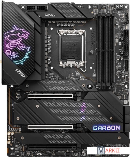 Поддержка процессоров 12-го поколения Intel Core / Pentium Celeron для разъема LGA 1700Поддержка памяти DDR5 с частотой 6666 МГц и выше (в режиме разгона)Высокоскоростные интерфейсы: слоты PCIe 5.0, M.2 (PCIe 4.0 x4), USB 3.2 Gen2x2Мощная система питания: схема 18+1+1 с прямым подключением фаз, два 8-контактных разъема питания процессора, технологии Core Boost и Memory BoostЭффективная система охлаждения: большой радиатор с тепловой трубкой, термопрокладки на транзисторах с теплопроводностью 7 Вт/(м·K), дополнительные термопрокладки на дросселях, радиаторы Shield Frozr на слотах M.2Подсветка Mystic Light с гибкой регулировкой: 16,8 млн цветов и несколько визуальных эффектов, подключение внешней адресуемой и неадресуемой подсветкиКонтроллеры 2.5G Ethernet (с трафик-менеджером LAN Manager) и Intel Wi-Fi 6E: высокоскоростное и стабильное проводное и беспроводное сетевое подключение для широкого спектра приложенийАудиосистема Audio Boost 5: высококачественное звучание, создающее неповторимую атмосферу в играхВысококачественная конструкция: 8-слойная печатная плата с увеличенным содержанием медиПредустановленная панель ввода/вывода: защищает от электромагнитных помех и облегчает установку материнской платы