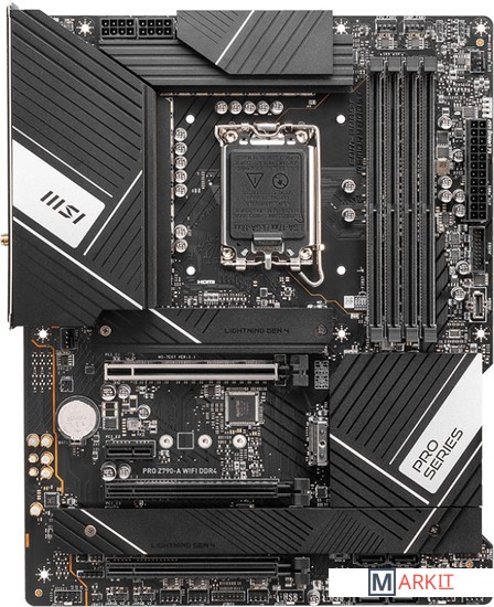 PRO Z790-A WIFI DDR4 – это широкая функциональность в сочетании с WIFI и поддержкой памяти DDR4.Серия PRO – это оборудование для профессионалов, работающих в самых разных сферах. Такие устройства отличаются высоким качеством изготовления, великолепной производительностью и удобством использования. Выбирайте PRO-серию MSI, чтобы работать продуктивнее и эффективнее!Увеличенный радиаторБлагодаря увеличенному радиатору увеличивается общая площадь теплорассеяния, что способствует эффективному охлаждению под высокими нагрузками.Радиатор M.2 Shield FrozrПредотвращает перегрев и последующее падение производительности твердотельного накопителя в слоте M.2, а также защищают подключенное устройство от физических воздействий.Массивный радиатор системы питанияРассеивает тепло, выделяемое МОП-транзисторами в верхней части платы.Эффективные термопрокладкиНа транзисторах системы питания имеются термопрокладки с теплопроводностью в 7Вт/(м·K). Доп. термопрокладками снабжены катушки, что гарантирует стабильную работу компьютера.Чипсетный радиаторЧипсетный радиатор предназначен для уменьшения пыли и шума, а также способен поддерживать высокую эффективность чипсета.Поддерживаются процессоры 12-/ 13-го поколения Intel® Core™, Pentium® Gold и Celeron® для сокета LGA 1700Поддерживается память DDR4, до 5333+(OC) МГцМощная система питания: 16+1+1 DRPS с 80A SPS, два 8-конт. процессорных разъема питания, Core Boost, Memory BoostЭффективное охлаждение: увеличенный радиатор, термопрокладки 7Вт/(м·K) на элементах питания, дополнительные катушки с термопрокладками и технология M.2 Shield Frozr для производительной работы нон-стопВысококачественная конструкция: 6-слойная печатная плата, изготовленная по серверным стандартам, с увеличенным содержанием медиВысокоскоростные интерфейсы: слоты PCIe 5.0, Lightning Gen 4 x4 M.2, USB 3.2 Gen 2x2Интерфейс Intel Turbo USB 3.2 Gen 2: USB-контроллер Intel обеспечивает стабильно высокую скорость передачи данных2.5G Ethernet и Wi-Fi 6E: высокоскоростное и стабильное проводное и беспроводное сетевое подключение для широкого спектра приложенийАудиосистема AUDIO BOOST 5: высококачественное звучание, создающее неповторимую атмосферу в играх