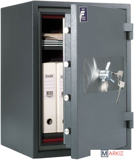 Огневзломостойкий сейф VALBERG ГАРАНТ ЕВРО 67 KL - это надежное и вместительное хранилище для документов и денег компании в случае пожара или взлома. Сейф получил сертификат в Германии благодаря своему отличному, поистине европейскому качеству. 2-й класс устойчивости ко взлому, трехсторонняя восьмиригельная система запирания, защищенная от любых внешних воздействий – всё это обеспечивает высокую безопасность, обеспечиваемую данной моделью. Мощные стенки и дверца, а также система анкеров для крепления к полу делают этот сейф поистине неприступным для злоумышленников. ГАРАНТ ЕВРО 67 KL от VALBERG оснащен прочным немецким ключевым замком.