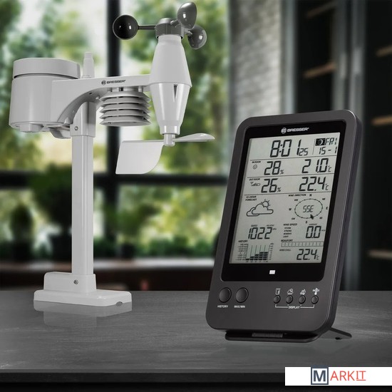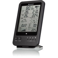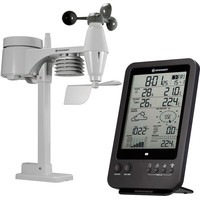 Множество функций в одном метеоприбореПоказывает время, есть будильник и календарьВстроенные гигрометр, термометр, ветромер, барометр и дождемерСоставляет прогноз погоды на 12 часовПитание от стандартных батареек, настенное и настольное размещение