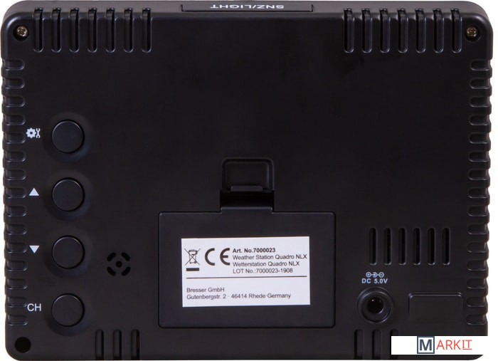 Источник питания:метеостанция: сетевой адаптер 5 В (в комплекте) или батарейки (нет в комплекте)наружный датчик (3 шт): батарейки типа ААА – 2 шт. (в каждый, нет в комплекте)