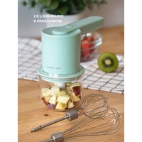 Миксер аккумуляторный 2 в 1 GALAXY LINE GL2234 – предназначен для взбивания, смешивания и измельчения ингредиентов и продуктов. 5 скоростей позволяют выбрать необходимую скорость согласно рецепта. Насадка-венчик подходит для взбивания и смешивания жидких ингредиентов. Насадка для взбивания крема подходит для перемешивания ингредиентов с густой консистенцией. Трехлопастный нож и чаша объемом 300 мл позволяют измельчать продукты подобно чопперу.