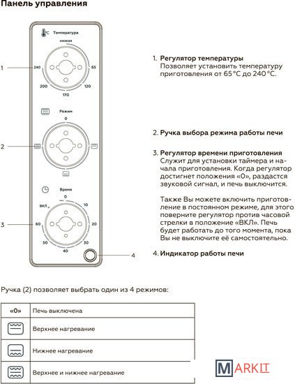 | Режимы работы духового шкафа |