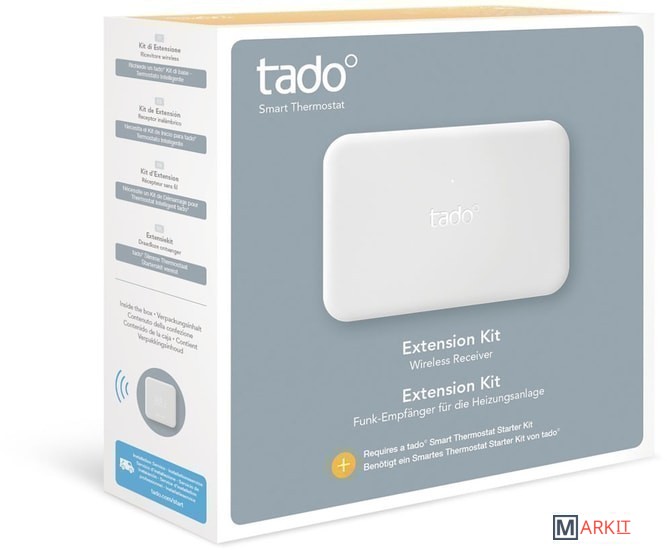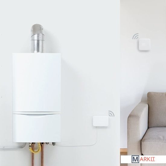 Беспроводной ресивер подключается напрямую к системе отопления и соединяет по радиоканалу все термостаты в доме. Для работы Tado Starter Kit.