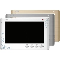 Цветной монитор видеодомофона 7" с детекцией движения. К монитору можно подключить одну или две вызывные панели, одну или две дополнительные внешние камеры, один или два датчика тревоги, дополнительный монитор или телевизор с композитным входом, а также до 3-х дополнительных домофонных мониторов марки CTV.В изделии предусмотрена возможность замены передней декоративной накладки. В комплекте предлагается 3 различных цветовых варианта.