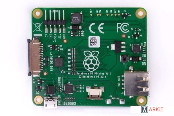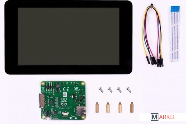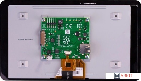 Сенсорный дисплей 7" с разрешением 800x480 и поддержкой 10 одновременных нажатий на сенсорную панель. В комплекте шлейф до DSI порта на Raspberry Pi и кабели для питания от портов GPIO.