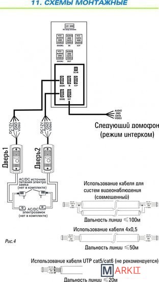 | Подключение вызывных панелей | 4-проводное |